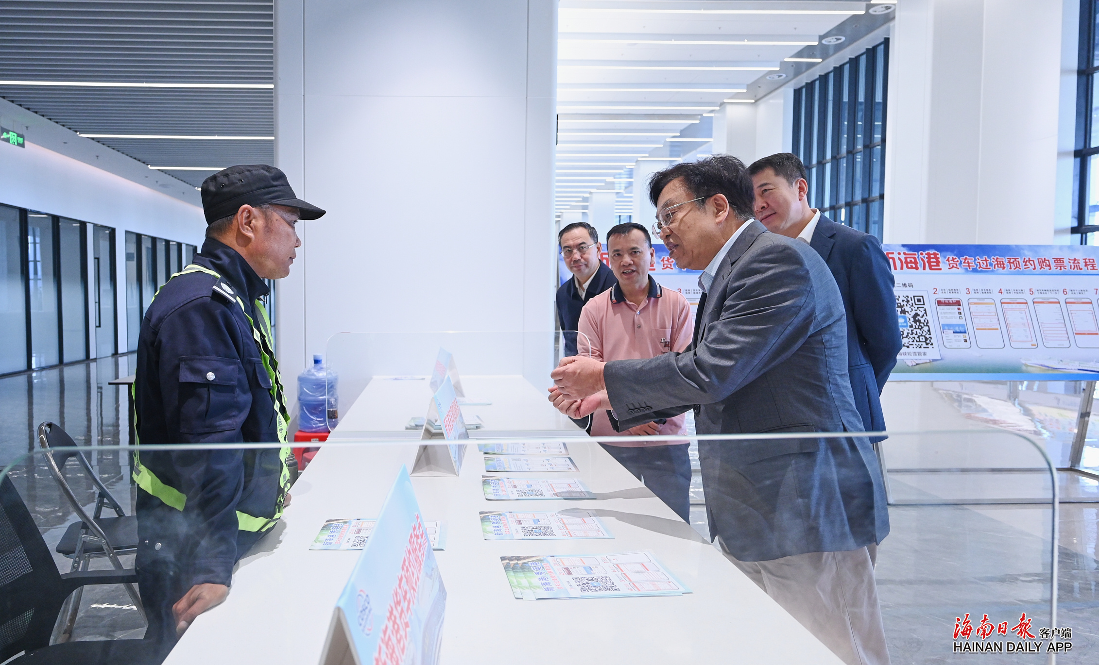 海南自由贸易港7×24小时热运行日前启动,海口新海港和南港“二线口岸”(货运)集中查验场是封关运作的关键基础设施,正持续开展全流程、全要素、全覆盖、大样本、实战化压力测试。冯飞来到查验场反走私联防联控办公室和指挥部,检查工作人员在岗情况,并详细了解海关监管车辆通关软硬件运行情况、车辆线下预约过海等情况。他强调,要坚持问题导向、目标导向,强化部门协同,聚焦重点任务和存在问题,梳理堵点卡点,迅速整改落实;要进一步提升服务意识、优化工作流程,持续提升通关便利化水平,全力确保封关运作平稳有序。