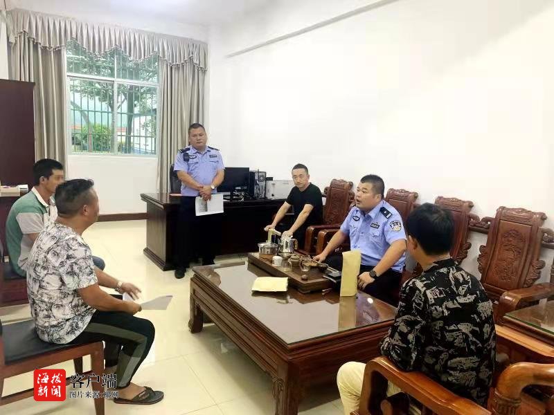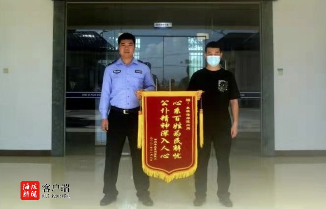 商报全媒体讯(椰网/海拔手机端记者 徐明锋 通讯员 黄强 曾祥琳 摄影报道)11月8日,万宁某工地务工的几位工人代表怀着激动的心情,带着一面印有“心系百姓为民解忧,公仆精神深入人心”的锦旗来到万宁市公安局东澳海岸派出所,为前段时间派出所民警主动作为,帮助他们讨回拖欠工资一事表示感谢。
