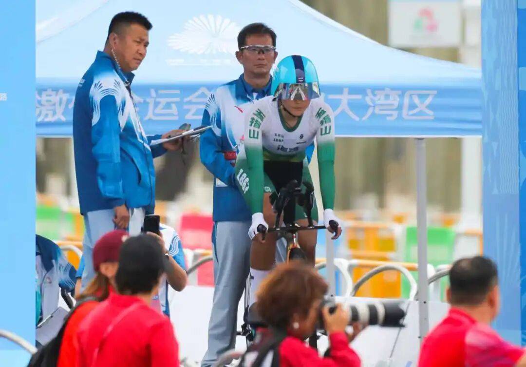 11月7日上午,第十五届全国运动会自行车(公路)项目正式开赛。海南选手张好在女子个人计时赛中以39分02秒87的成绩夺得冠军,为海南代表团摘得本届全运会首金。