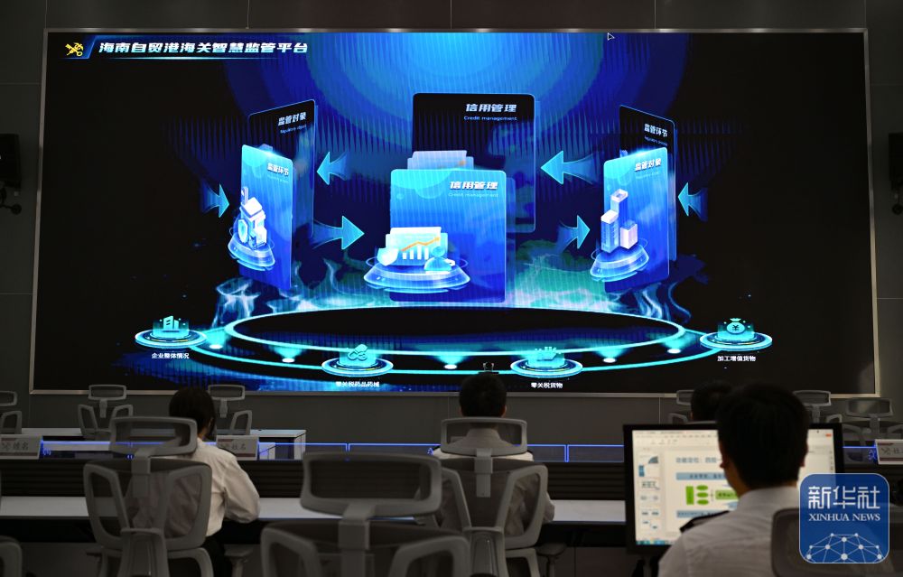 这是位于海口海关业务运行监控中心的海南自贸港海关智慧监管平台大屏幕(11月27日摄)。