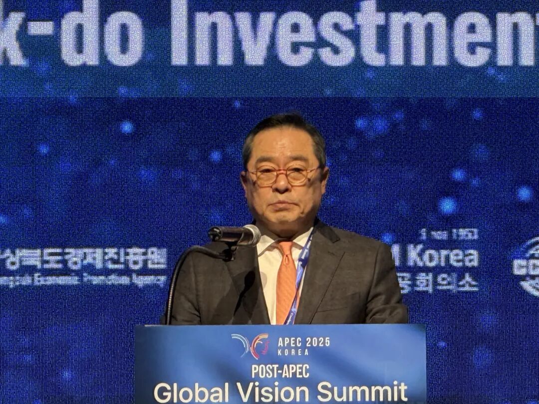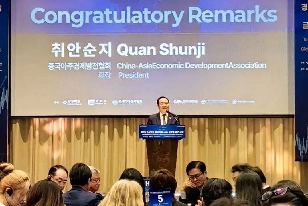 11月27日-28日,由庆尚北道、庆州市、韩国亚太经济协会主办,庆尚北道经济振兴院、中国贸易促进会韩国代表处承办,中国亚洲经济发展协会特别支持的2025全球愿景峰会—Post APEC在首尔洲际酒店成功举办。参加本次活动的主要领导有:韩国国务总理金民锡(视频致辞),韩国庆尚北道道知事李喆雨、经济副知事梁琴喜,总统直属国民融合委员会委员长李石渊,前外交部长官尹炳世,中国驻韩国大使馆大使戴兵,秘鲁驻韩大使Paul Duclos、摩洛哥驻韩大使 Chafik Rachadi,韩国LS集团公司名誉会长、韩国贸易协会名誉会长具滋烈,韩国庆州市市长朱洛荣,中国亚洲经济发展协会会长权顺基,韩国亚太经济协会理事长池永模,三星医疗财团理事长黄得圭,韩国亚太经济协会名誉会长、韩国世宗电信株式会社会长金亨珍,韩国贸易振兴公社全球研究院院长洪彰杓,中国亚洲经济发展协会常务副会长尚寿山、王江、杨大陆、朴英祚、许永洙、赵光明、孙全、靳力群,副会长黎志明、李春日、李宙确、李文利、赵跃杰、张国志、朴龙日,亚经协朝鲜族联合发展工作委员会法律顾问金玄默、泰国国家研究院泰中战略研究中心副主任唐隆功·吴森提兰谷,灵伴科技Rokid副总裁陈希等一同参会。