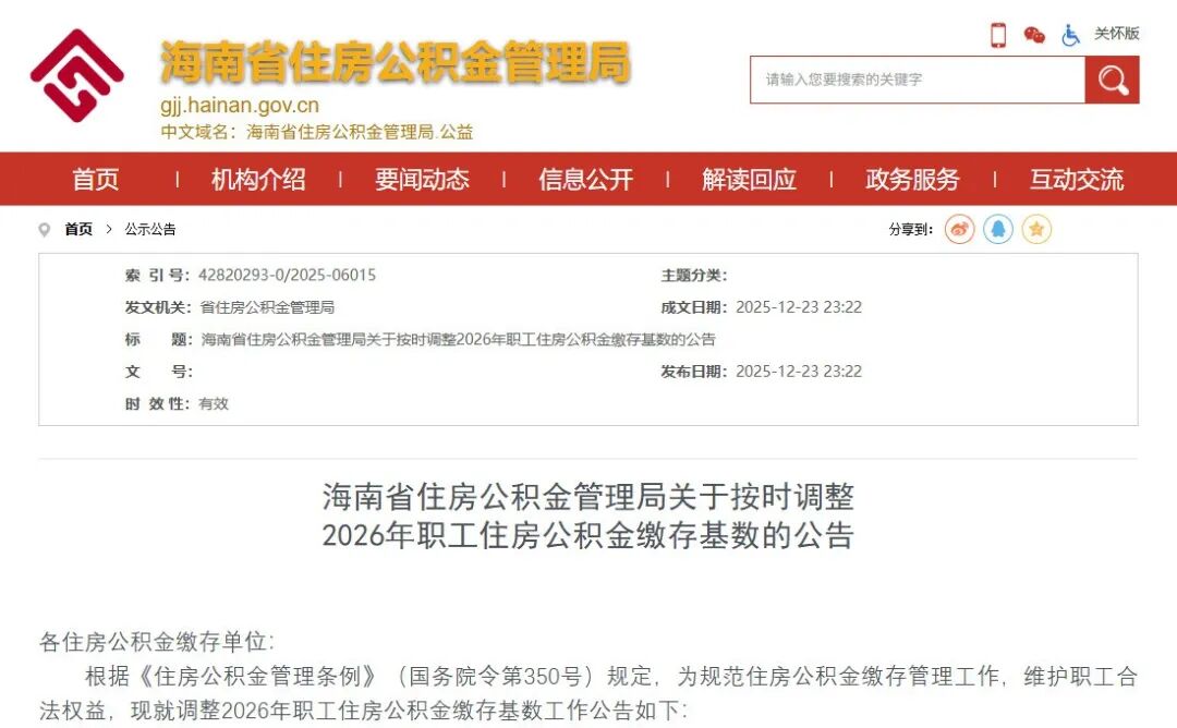 三、办理渠道及工作要求。财政统发单位应在财政工资统发系统中进行调整,其他单位可通过“海南政务服务网”的“海南省住房公积金管理局网上办事大厅”专栏进行调整。各缴存单位应按时以核定后的缴存基数为本单位职工缴存2026年住房公积金。